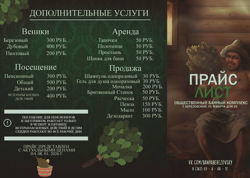 Пар хорош, но ремонт заведению не помешал бы. Закрывающихся шкафчиков нет, ценные вещи администратору отдавать. Есть холодное пиво по 100 рублей) Для того, чтобы окунуться в ностальгию по общественным баням из советского прошлого - место самое то. Цена 400 рублей безлимит - дороговато, по-моему.