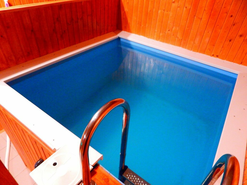Гараж переоборудовали под баню. Бассейн маленький и холодный. Места не много. Единственное- баньку могут на топить очень хорошо