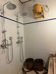 В комплексе несколько бань. Администратор была внимательна, объяснила все условия пользования, были предложены услуги пар- мастера. Старорусская баня. Просторная с деревянной мебелью, зоной отдыха с телевизором, парилкой и душевой, уличный бассейн с подогревом и подсветкой. В зоне отдыха предложен чай трех видов и кофе.