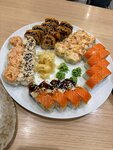 Уютно, но осадок остался. 10.03.2026 Плюсы: 1. Атмосфера и забота: Очень порадовало, что в честь прошедшего праздника на каждом столе стоял цветочек — мелочь, а приятно. Интерьер красивый, играет приятная музыка. 2. Для детей: Есть игровая комната для детей, и это большой плюс, так как гости в основном семьи с детьми. 3. Еда: Заказывали сет. По соотношению цены и качества — вроде неплохо (отдали 1880 рублей, фото прилагаю). · Порадовало количество лосося. · Очень приятно удивило необычное сочетание — черничный чай и «Дубайский» чизкейк (хоть он ничем не похож на знаменитый шоколад, но сам по себе вкусный). Минусы: 1. Обслуживание: Официант не представилась. На мой вопрос об акциях, которые у них сейчас проходят, внятного ответа не последовало. 2. Качество блюд (неприятный момент): Роллы могу оценить на «средние»: в каждом чего-то не хватило (где-то солености рыбки, где-то хруста темпуры). Но главное — в одной из роллов попалась кость от рыбы. Это, мягко говоря, неприятно. 3. Неловкий момент с выносом: Мы не доели роллы и попросили забрать с собой. Нам принесли пустой контейнер, как бы намекая: «Собирайте сами». Вышло не очень гостеприимно, хотелось бы, чтобы официант помог собрать или хотя бы предложил это сделать. Итог: Оценка 3 из 5.