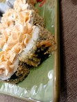 Темпура Банзай Горячий ролл с семгой, копченым угрем, сыром "Фета" и свежим огурцом.