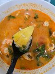 Попробовал том ям и булочку бао. К булочке вопросов совсем нет, всё хорошо. А вот том ям очень плох. Рис был немного заветрен, температуру супа хотелось бы погорячее, бульон не густой, из морепродуктов только креветки, к ним претензий нет. Основная претензия ко вкусу супа, его плотности, начинке и подаче. Почему вместе с рисом, как везде, не дают лайм, не знаю. Ещё в супе обнаружил ананас, это что-то новое. Итог. Худший том ям что я пробовал.