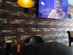 Небольшой Барчик с пивными кранами и возможностью прийти со своей едой из соседней бургерной! Девушка с радостью подсказала и рассказала какое пиво лучше взять попробовать на наш вкус! Можно пообщаться, поиграть в игры! Советую хоть раз посетить!
