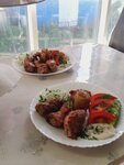 Брали тарелку с шашлыком за 550 р. Шашлык показался вчерашним или просто разогретым. Остальное в тарелке - просто помидорки, огурчики , соус и картошка - норм. Но за эти деньги не стоит конечно