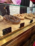 Случайно забежала во время экскурсии, очереди не было, наверное, мне повезло… Взяла крендель сахар-корица-шоколад … мммм он прекрасен!))) мягкий, нежный, вкусный! Потом брали на пробу крендели в других местах, но после первого вообще не то - показалось, что просто хлеб и не самый мягкий. Латте нежное, хорошо молочное. В конце дня вернулись за повтором!) спасибо! Молодцы! Вкусно!