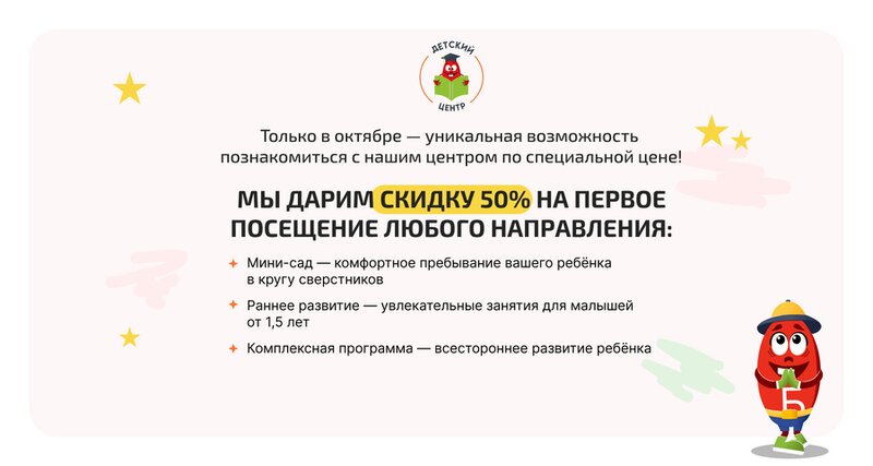 Занимались в этом центре с педагогом Еленой Павловной . Пришли к ней по рекомендации , теперь и мы будем рекомендовать такого разностороннего специалиста . Сразу выявила причину , поставила ручку , научила красиво писать , прекрасно расположила к себе ребенка . Сам центр очень приятный , чистый , уютный , закрывается дверь , что немаловажно для меня. Ходили с большим удовольствием . СПАСИБО!!!