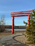 Японские П образные ворота тори . Многие в поисках этого места , оно находиться в зоне барбекю КП Европейский . Мы шли по берегу , там везде шлагбаумы , не пройти к вода свободно . От остановки Дачи (17 маршрутка) вниз по дороге к Оби , мимо Динамо, как выйдите к воде далее по берегу по ходу течения на право , идти мимо Флора и Фауна ,далее здание с колоннами ротонда , далее маленького парка с банней , гамаками , лавочками . И далее уже Ворота !!! Идти соразу скажу не мало , 3,5 -4 км в одну сторону . Если идти от флора и фауна тогда 2,5-3 км .