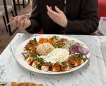 Были в барбекю в тц кольцо, и там оно совсем другое! Подача блюда другая( прикреплю фото для сравнения), тут подали люля в какой то железной собачьей миске, йогурт другой, салаты сухие, риса положили мало. Очень не рекомендую сюда заходить именно по этому адресу, но думаю упущение хозяина заведения что у них в точках совсем разная еда! Первое фото это подача в тц кольцо для сравнения