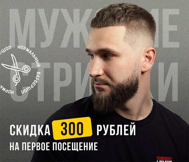Скидка 300 руб. на первое посещение! Мы предлагаем качественную услугу за разумную цену. Услуга распространяется на категорию барбер.