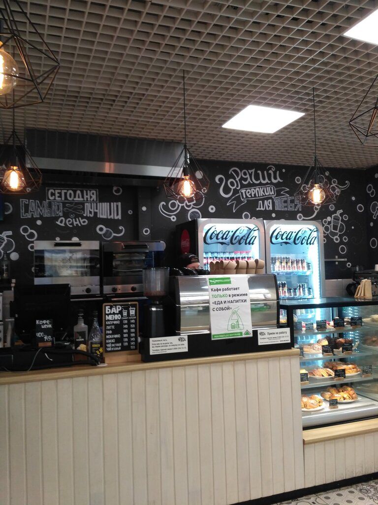 Вкусное кофе, быстрое обслуживание персонала. С учетом местонахождения чуть завышена цена на все остальные продукты прилавка. С другой стороны, удобное место расположение, после покупок в Леруа, можно передохнуть здесь за столиком.