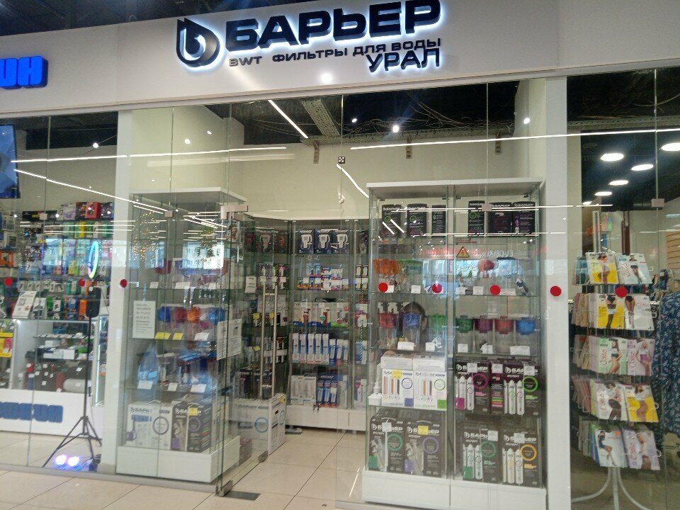 Небольшой магазинчик компании Барьер. Здесь можно купить фильтры-кувшины и катриджи для фильтров. Сюда можно сдать в переработку использованные катриджи .