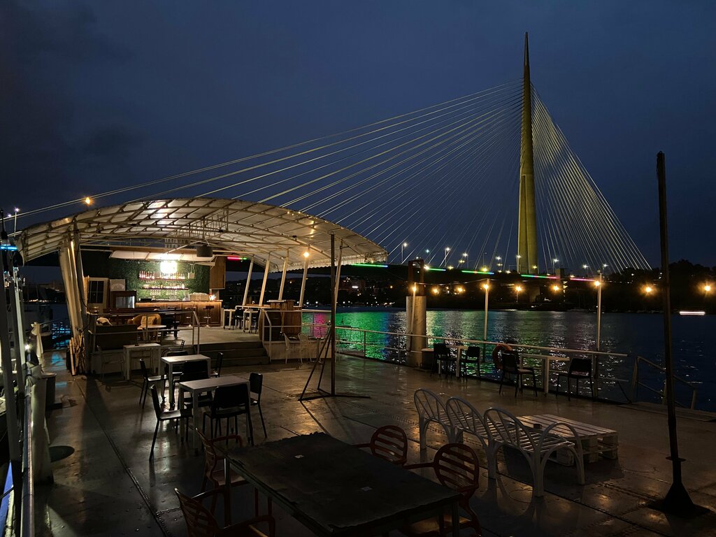 A cozy place with the opportunity to have a drink right on the deck of the ship overlooking the beautiful bridge