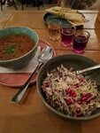Супы - просто превосходные! Борщ почти идеален ( лучше только у меня 😂), харчо - идеален( специи что-то невообразимое, я так точно не приготовлю), хинкали с перечным соусом - крупные, сочные и сытные, соус - огонь 🔥 а свечи-хинкальки на подоконнике такая милота 😻