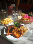 Превосходно приготовленное мясо с очень приличными порциями. Антураж обычного заштатного кафе, но не это главное- главное качество приготовленных блюд из мяса. Единственно, маловато овощей в меню, то есть их нет практически. Ориентируйтесь на это.