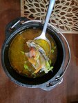 Зашли случайно. На улице был дождь со снегом. Очень душевно пообедали супчиками. Я брала борщ, к нему в комплекте сало и стопка самогона. А подруга ела уху, в комплекте прилагалась настойка ягодная. Все очень вкусно и помогло согреться. Советую. Атмосфера потрясающая