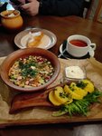 Уютный небольшой зал, хорошая кухня. Травяной чай был очень ароматный, тельное — отдельный восторг. Музыка тихая, не мешает общению.