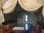 Невкусно, нельзя столько магазинного майонеза класть в салаты, супы не наваристые, еда, как в советской столовке, окна маленькие, так как зал находится в средневековой башне, темно, интерьер мрачный, разочарование