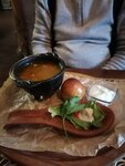 Место было многообещающим по фото, но в итоге разочаровало. Неуютно, официант постоянно все забывала, ребра не дожарили, гуляш в хлебе - рагу из морковки. Хлеб, кролик и утка - вроде ничего. В общем, средний ресторан в топовом месте.