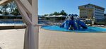 Отличная морская, очищенная и продезинфицированная вода. Шезлонги, душевые с горячей водой, кабинки для переодевания, отдельно детская джакузи, два детских с горками бассейна, рядом.👍😁