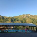 Мы пошли в этот бассейн после посещения Торгашинского хребта, совсем недалеко. На улице дул ветер, поэтому крытый бассейн это было прям необходимо. Вода очень тёплая. Глубина бассейна от 1,1 до 2,4 м, есть жилеты, круги. Внутри были открыты некоторые окна, поэтому было не душно. В стоимость входит полотенце, это очень удобно, внутри есть места для переодевания и душевая, но нет розеток, а хотелось высушить волосы, так как к вечеру было довольно прохладно на улице. Туалеты на улице или в кафе. Территория отеля красивая, ухоженная, там можно просто погулять, зайти в кафе. Виды вокруг бомбические!