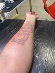 Огромное спасибо Надежде за потрясающую работу! Всё прошло на высшем уровне: от создания эскиза до самого процесса нанесения. Мастер учел все мои пожелания, работал очень быстро, аккуратно и профессионально. Результат превзошел все ожидания – получилась настоящая красота, даже лучше, чем я себе представляла! Также хочу сказать, что не только качество работы проявило на меня положительное впечатление, но и эта прекрасная, милая девушкам с которой очень приятно было находится и общаться в этой красивой, уютной студии🥰 Теперь за следующими татуировками только к Надежде!!)