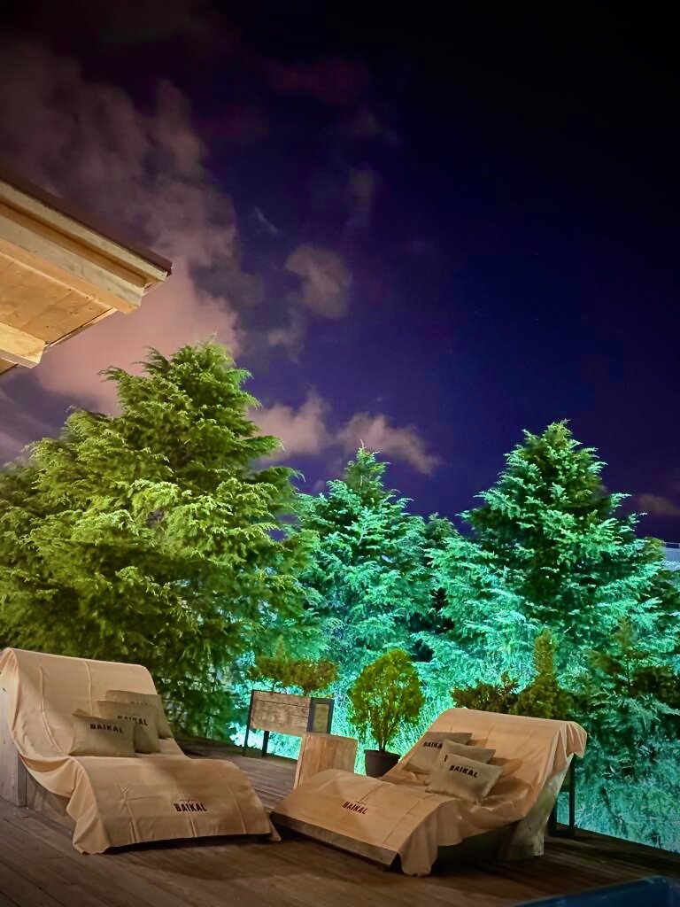 Отдыхали с мужем и с 11 месячным малышом, сняли шале на 3 часа, это было лучшим решением, массажист Ольга профессионал своего дела, руки-золото, много советов дала и очень хорошо «помяла» мое уставшее от таскания ребенка на руках тело ))) Анастасия организовала все очень здорово, нам даже пошли навстречу и принесли детский стульчик для малыша, попав в этот чудесный комплекс мы забыли обо всем !!! Чан с горячей водой и ветками ели и травами это что то нереальное, выходить не хотелось совершенно! Очень красиво внутри шале и снаружи, еда тоже вкусная, очень хорошее место доя семейного отдыха, ну а с компанией или вдвоем это вообще будет полный релакс и кайф!!