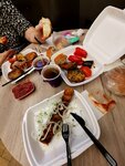 Заказали овощи гриль+картофель, люлякебаб свиную, соус, хлеб и чай. Всё было вкусно и сытно. Выбора на витрине гриля меньше чем указанно в меню. Выпечка на витрине выглядит заманчиво и вкусно, каждый найдёт что нравится. 1но посадочное место, и 1 место у окна. В помещении чисто, персонал приветливый и вежливый. Качество еды хорошее.