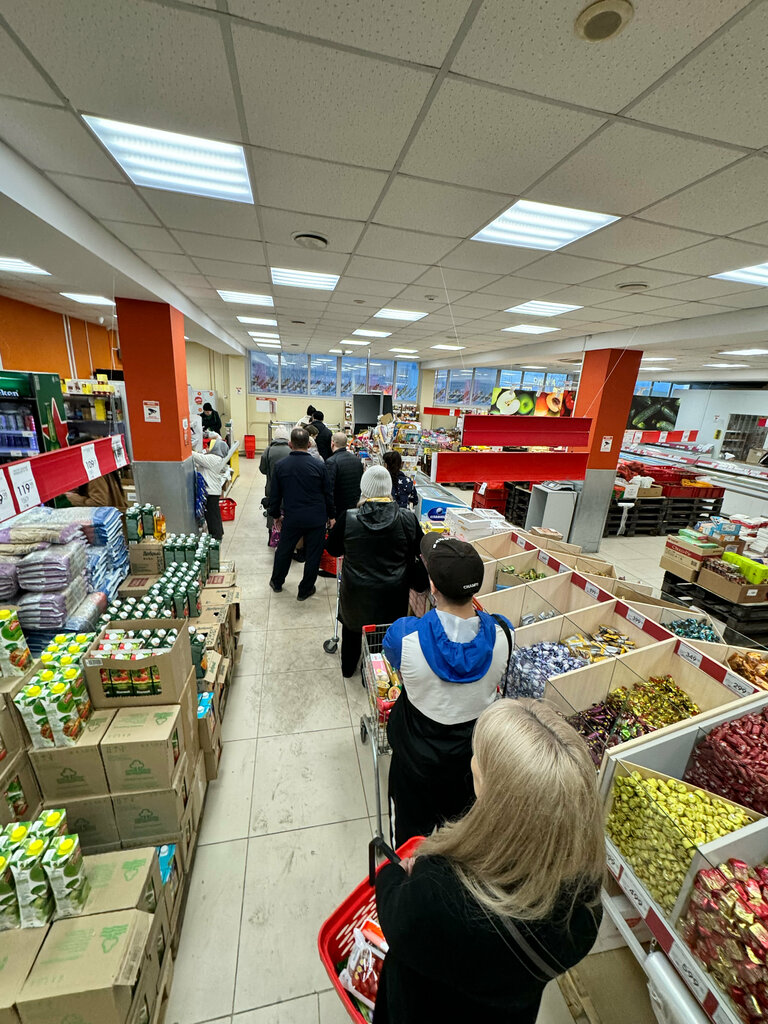 Минус это огромные очереди и очень часто работает одна касса. Просрочка попадается , хлеб с плесенью . Нужно быть внимательным хорошо смотреть товар и срок годности