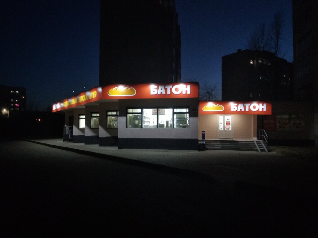 Батон в этом магазин с большое количество продуктов,прекрасный ассортимент, вежливый администратор. В магазине чистота и порядок. Есть некое неудобство на кассе. А в остальном всё.