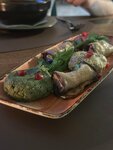 Вкусное меню с адекватными ценами, очень быстрая подача ( время было около 16-30) салат с баклажанами не жирный, все свежее. Штрудель с вишней интересная подача и очень много вишни! На уровне других Петербургских грузинских хороших заведений,но ценник приятнее)