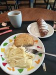 The interior is attractive. The prices are adequate. The food is delicious. There are both hot dishes and coffee with cakes. Lowered the score for the chicken chops. It's crowded at lunchtime.