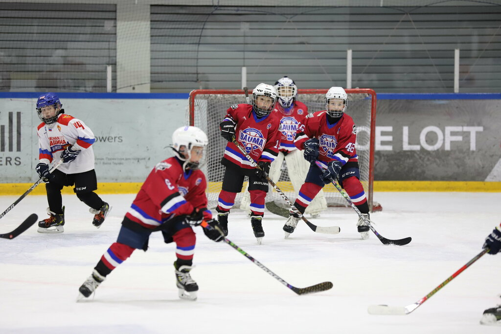 Сын занимается в х/к Баума. Все нравится. Замечательные тренера! Директор школы очень старается для детей и родителей. Есть большая парковка 50р/час, 15 минут бесплатно. Есть бесплатная парковка но нужно пройтись. Кафе уютное и вкусное, можно наблюдать прямо из кафе за процессом тренировок 👍