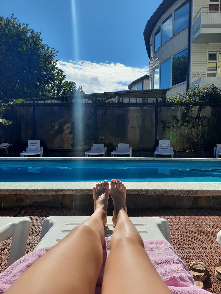 Небольшой, но очень уютный гостевой дом с бассейном. В собственной столовой работает превосходный шефповар Юля,которая может вас удивить разнообразием блюд.