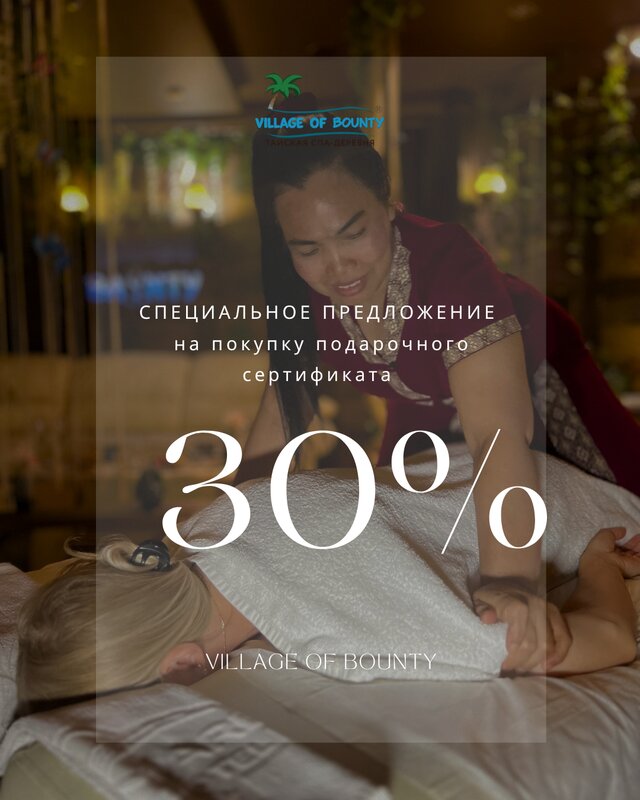 Посетили с мужем тайскую спа-деревню. В полном восторге от посещения спа-центра Baunty! Это место действительно уникальное. 🤩Процедуры здесь — настоящая роскошь: кедровая фитобочка, массаж нам предложили на выбор любой техники. Специалисты высшего класса делают свою работу на 100%. Администратор Анна все показала, объяснила. После массажа, джакузи с гидромассажем, финская сауна и ужин при свечах. Атмосфера невероятно расслабляющая, и сервис на высоте. 👍Однозначно придём ещё. Рекомендую всем, кто хочет восстановить силы и насладиться комфортом! Спасибо большое за отдых.🫶