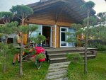 Хорошо. Много сделано для детских развлечений: песочница, клетки с кроликами. На территории есть парковка для машин. Кухня общая: 2 холодильника, плита, микроволновка, чайник, кастрюли, посуда - всё, что надо. Большинство домиков сдвоенные, в каждом есть открытая веранда и индивидуальный санузел с душем. Есть Wi-fi. К сожалению, двухместные номера тесноваты - 12 кв. м., включая душ и туалет.