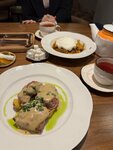 Были на бизнес ланч 22 августа 2025г. Изысканный интерьер, красивая и даже необычная посуда ( например, приборы из нержавеющей стали с медным покрытием). Сделали заказ обеда заранее, поэтому обслужили нас быстро. Бизнес ланч с блюдами на выбор. В общей сложности полный ланч стоит около 600 рублей. Заказали салат с языком, суп солянка и картофельный суп, голубцы из трески, лазанья и мясная скоблянка. Всё понравилось, кроме рыбы ( была сухая и плохо прокручен фарш, попадались кости и плюс не хватило вкуса).