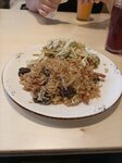 Вкусный плов(жирненький как я люблю,мясо достаточно)порция большая плюс салатик,компот вишневый неплох. Цены невысокие. Туалеты чистые,интерьер с восточной ноткой,столы и стулья деревянные,долго не насидишься,но есть небольшие подушки) Чак Чак вкусный! Буду приходить ещё