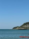 Песочный берег, оборудованный пляж. Заходить и выходить в воду по крупной гальке хорошо бы в тапках. Морюшко было чистое. Чебуреки и рыбка около входа фантастически вкусные. Набережная ещё не огорожена. Место милое. Была в сентябре. Поспел инжир