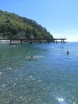 Очень красивое место. Отличное море. Чистое. Глубокое. Свежее. Галечный пляж. Жаль, что прибрежная линия невелика, поэтому в разгар дня может быть тесно. Лежаки с навесами. Туалет. Кафе. Бомбический вид с лестницы. Пожалуй, стоит сюда вернуться. Рекомендую!