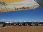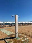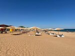 Пляж очень понравился! Из плюсов: - обширная территория, зонтики стоят на расстоянии друг от друга, бунгало также; - на территории проложены дорожки; - бесплатная пресная вода в уличных душевых, можно в любое время, до поздней ночи, ополоснуться самому и помыть ноги и обувь от песка; - в раздевалках есть урна для мусора, благодаря чему ни разу не наблюдал в щелях раздевалки воткнутый предмет женской интимной гигиены! - детская площадка на территории, подальше от моря! Очень помогает, когда малышу купаться уже не желательно, а он всё лезет в море! - спортивная площадка с уличными тренажерами! С большим удовольствием занимаюсь сам, занимаются дети, занимаются другие дети и взрослые! - качели для детей и взрослых! - кафе на территории! Кстати, песочек очень чистый! Впервые в жизни видел, как ребята таскают по песку приспособу для очистки песка от мусора и камушков. А еще, если что-то ломается из тренажеров или на детской площадке, то поломку тут-же чинят! Очень приятно удивлен! У всего есть свой ресурс, ломается всё! Не все сразу берутся за ремонт! А тут, тренажер один поломался, пришел персонал со сварочным аппаратом, заварил! Минус, к сожалению тоже есть, он не относится к компетенции администрации, - камни в воде, которые затрудняют купание. Если тихо, то всё видно, обплыл и всего делов. Если же штормит - то и дело натыкаешься на камни, поросшие водорослями, под водой! Но и здесь администрация каждый год работает над решением этой проблемы. Трактором вытаскивают из воды камни. Правда, после первого же шторма, оголяются новые... Руководству пляжа - РЕСПЕКТ!