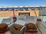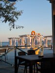 Самый лучший пляж из рядом находящихся! Чистый, ухоженный! Очень много лежаков и бунгало, но за отдельную плату. Мы располагались просто на песочке, очень комфортно) Туалет платный. Кабинки для переодевания и пресная вода( ополоснуться после моря) присутствуют. Кафе не дорогое, очень приятные и клиентоориентированые девушки там работают,но там не пообедать,к сожалению,на выбор только фастфуд.Хачапури по-аджарски безумно вкусное! Так же имеется детская площадка и тренажёры. В общем, для отдыха с детьми самое то, что нужно!