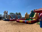 Пляж и берег хороший, песчаный. Есть места для игр детям, площадки, водяные горки, пенная вечеринка, кафе. Приехал сюда первый раз, спасатель, который обилечивает лежаки подошёл к нам и молча стоит на нас смотрит, из него вытягивали стоимость, на сколько, как можно оплатить… Вход в воду: много травы и плит, который встречаются в неожиданных разных местах, в общем практически не купался.