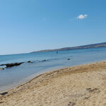 Отличный пляж для отдыха с детьми. Чистейшая вода и отсутствие глубины. Минусом данного пляжа можно отметить камни и водоросли на дне, препятствующие заходу на глубину. Из плюсов-отличный подводный мир) видно рыбок, в больших камнях живут крабики. Также данный пляж не подойдет людям, панически боящихся собак. Собаки там местные, добрейшие. Им абсолютно все равно на туристов