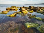 К пляжу вопросов нет. Песок, мелкий ракушечник. Есть раздевалки, горки, кафе в общем как везде. Море чистое. Теперь самое интересное ВХОД В МОРЕ Метров через шесть,прозрачной чистой водички. каменная гряда! И тут либо искать проход среди камней (они присутствуют) либо через них переплыть. С маской плавать одно удовольствие, рыбки растительность, вода прозрачная, глубина 4-6 метров.