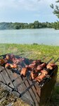 Nice beach. The meerkat likes it. The parking lot is huge, there are few people. There are places for a good entry into the water, fish are caught. In the photo, they were caught and fried.