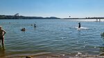 Суперрский пляж. Песок белый (привозной).Озеро чистое (но непрозрачное, вода не пахнет). Народу много, но места хватает. Кто то уже к обеду уходит, а кто то ещё только идёт на пляж отдохнуть. Вокруг чисто. Не хватает нормальных передевалок. Но их по ходу сейчас строят. Наверное, к следующему году сделают платный пляж, судя по тому как его облагараживают. Бесплатно только сыр в ......