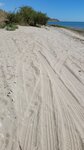 Есть спуск для авто. Но это дикий пляж, где нет урн, туалета. Машины имеют наглость ездить прямо вдоль берега по воде. Наглые владельцы лодок на тракторе заезжают в воду, сами уплывают, а трактор стоит в воде и капает своим маслом в воду. И всем плевать, что рядом детский пляж лагеря. Хамы. А так, отличное место!
