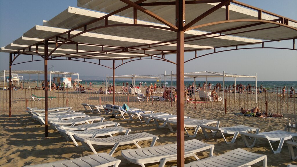 Пляж чистый, ухоженный песок. Много лежаков, навесы. Есть туалет при чём именно туалет о не дырки в полу. Мыло, вода помыть руки тоже присутствует. Некоторые пишут что туалет и лежаки платные ни чего подобного. Бесплатно!!! Душ, ополоснуться после моря. Кабинки для переодивания. Спасатели и мед персонал 👍