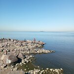 Туалетов нет, заход в воду - через камни и солому, которой много в воде и на берегу, она тоже колет ноги, на берегу песка почти нет, камни острые. Это не пляж (для купания). А место само очень хорошее и красивое, вид на залив изумительный. Рядом новоблагоустроенная зона отдыха, днём и вечером очень много народа