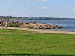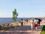 Хорошее место спрятаться от удушья мегаполиса.Недалеко,удобно ехать,есть и прокат машинок для детей и качели-скамейки для парочек и лежаки.Можно найти тень от небольших групп деревьев,народ жарит шашлыки...Главное отличный морской ветерок,понижающий по сравнению с кварталами рядом температуру аж на 3-4°С.Отличный вид на всю акваторию вплоть до Кронштадта(можете увидеть купол собора).Если есть бинокль,то разглядите всё!